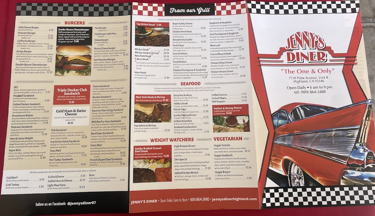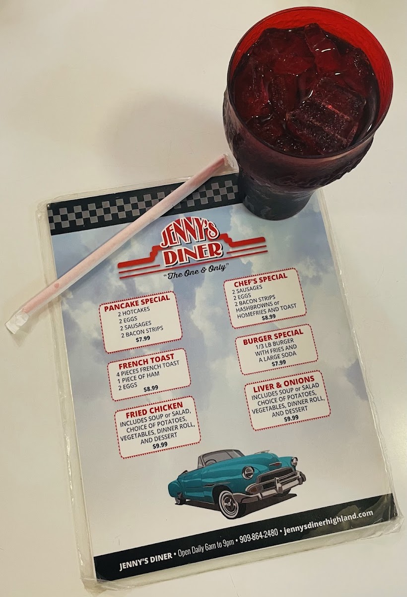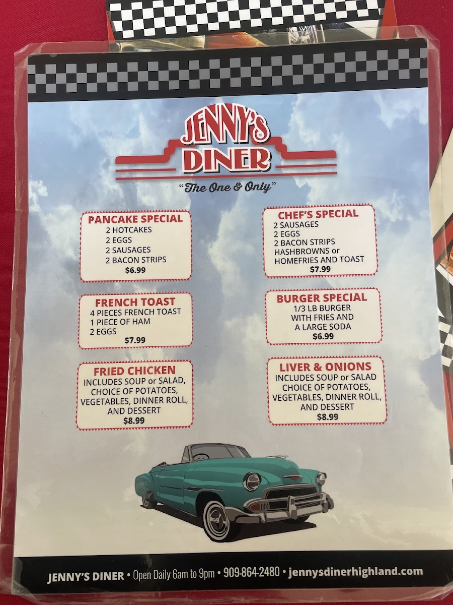 Welcome to Jenny's Diner, a charming spot nestled in Highland, CA, where nostalgia meets delicious flavors. Step inside this beloved local diner, and you’ll find a warm, inviting atmosphere, perfect for starting your day or winding down after a long one. The retro decor, coupled with friendly service, creates a dining experience that feels like a comforting embrace from days gone by.