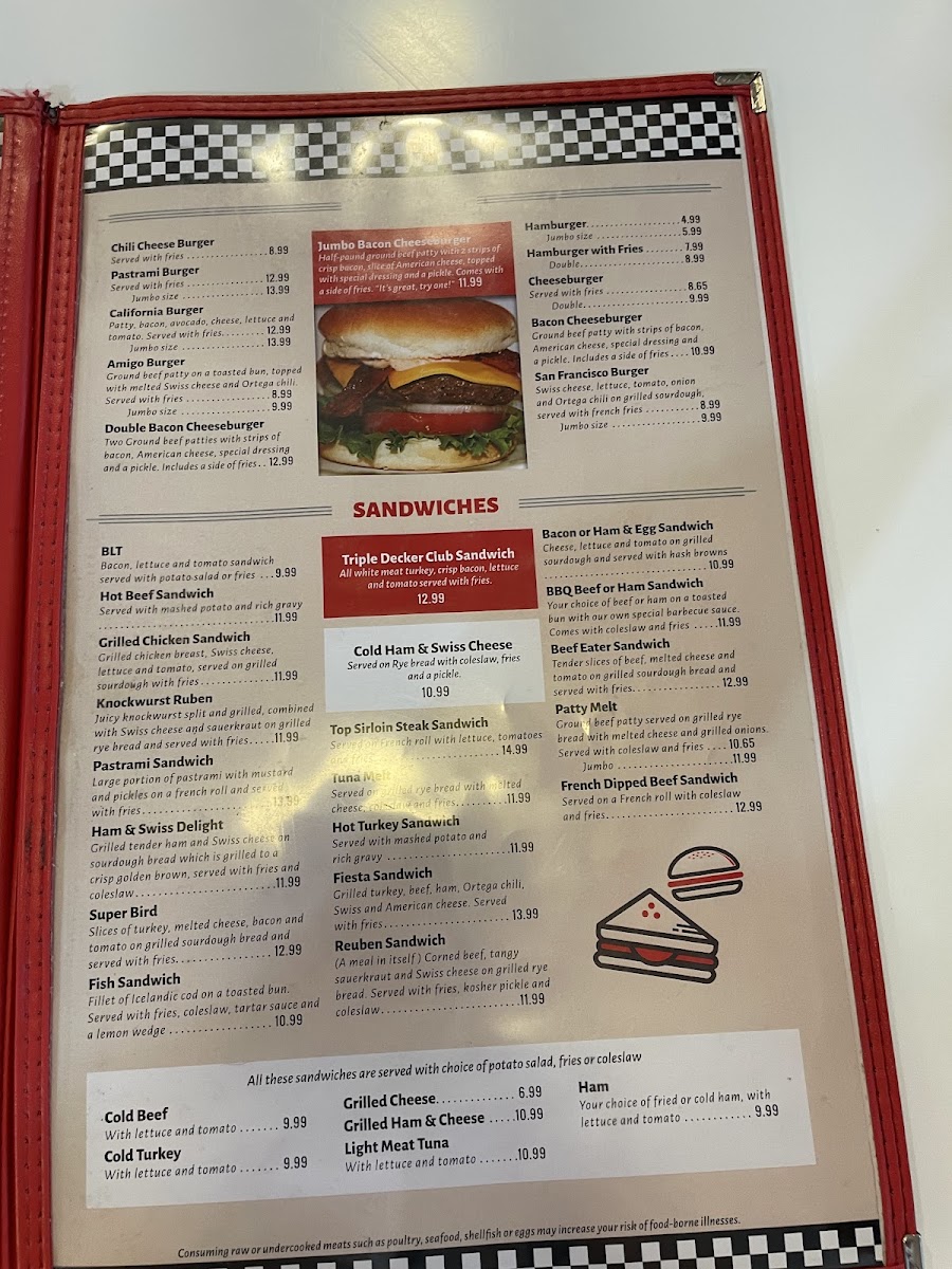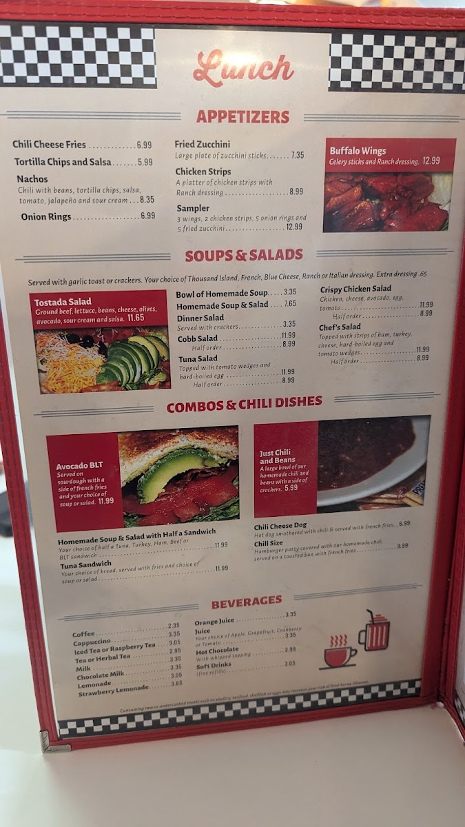 Don’t forget to wash it all down with a delightful beverage; whether it’s a classic cup of coffee for $2.99 or a refreshing glass of Strawberry Lemonade for $4.99, there’s something to complement your meal perfectly.